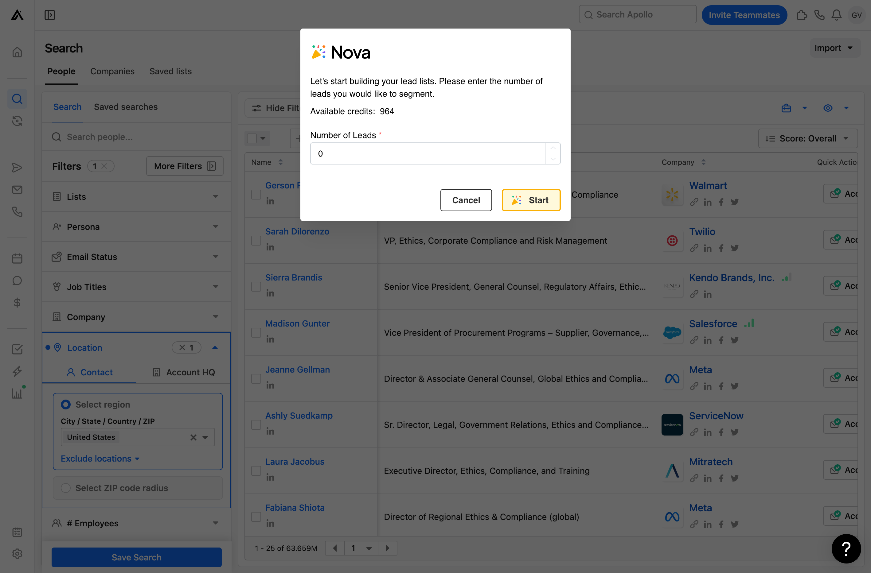 Nova works on top of the tools you already use. Easily export thousands of leads from Apollo and get segmented lists made for you.